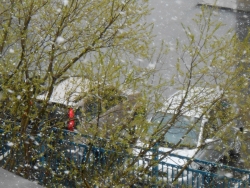 В городе идет "добрый" снежок, уже нападало хорошо. Пурги нет, просто снегопад. Заметил, что появились "снежные козырьки" и сосульки. Поднимайте головы!
